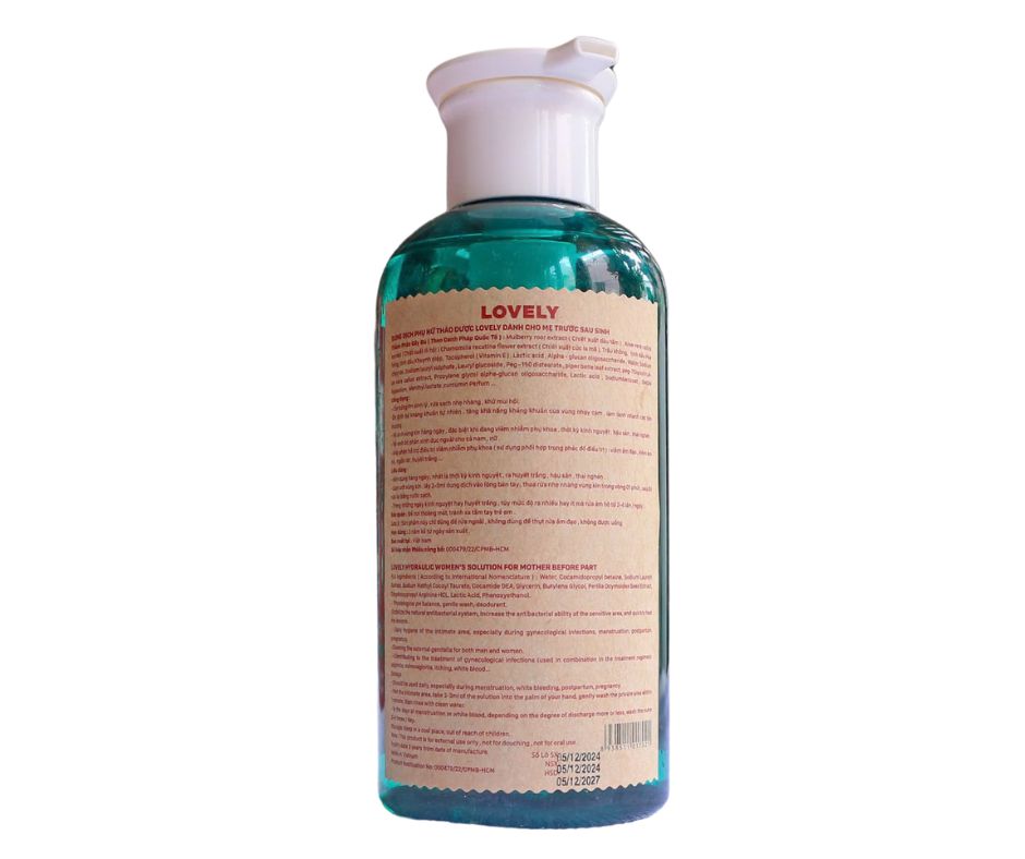 -Tên sản phẩm: Dung dịch phụ nữ thảo dược Lovely dành cho mẹ trước và sau sinh